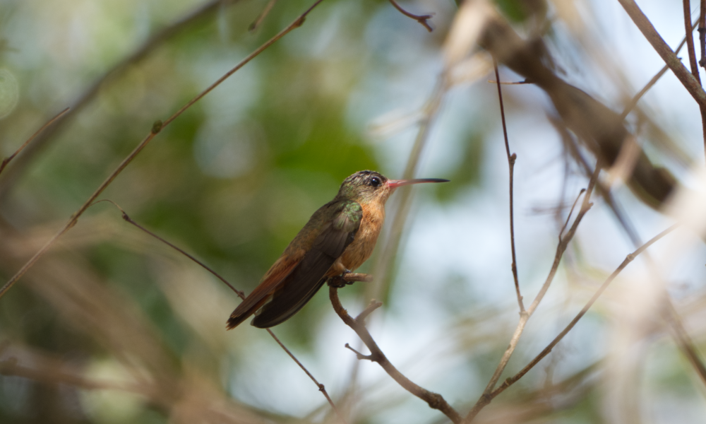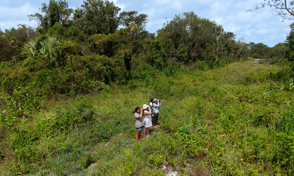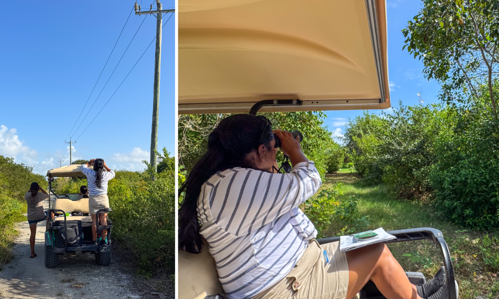 We decided to find out firsthand. Three Sandy Point Resorts staff members, a local photographer, and a full day with local guide Rochelle Hancock of Island Birding Adventures. We set six target birds and came home with four of them. What surprised us was how accessible it all was. No jungle hikes, no remote lodges — just a golf cart, a knowledgeable guide, and habitats that delivered something new around every corner. One of us had almost no birding experience going in, and ended up having one of the best days on the island — learning how to use binoculars, picking up bird calls, and spotting things the rest of us had walked straight past.