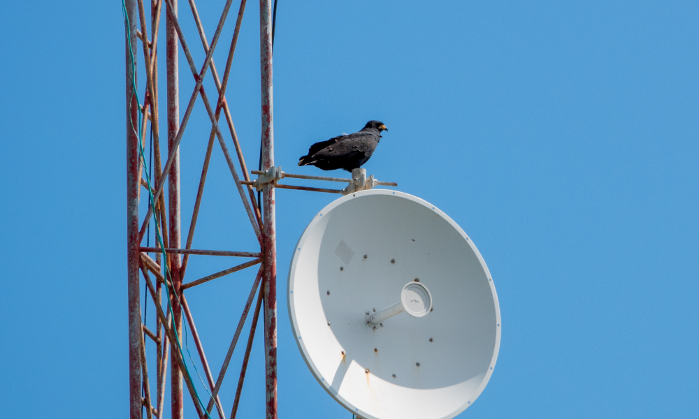 Further into the tour, a Common Black Hawk perched high on a communications tower at the forest edge, dark and stocky against the open sky. That one I spotted myself, and there is a particular satisfaction in calling out a bird and having the guide confirm it.