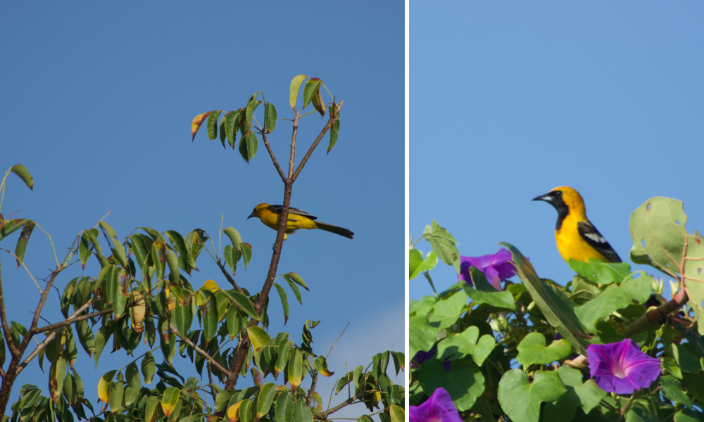 The scrub interior produced an oriole count that caught all of us off guard. Five species in a single day: Black-cowled, Hooded, Yellow-backed, Orange, and Altamira. Each one distinct enough that even newer birders in the group could follow along as Rochelle called them out. The Altamira in particular is a striking bird, large and boldly marked, and seeing it alongside the smaller Hooded in the same patch of scrub made for a useful comparison that no field guide quite replicates.